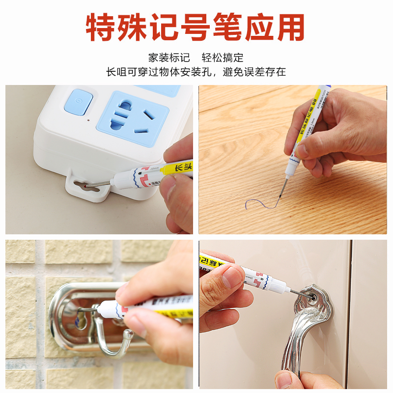 不再挡到孔了!钻孔定位专用加长头记号笔中柏木工记号笔适用深孔
