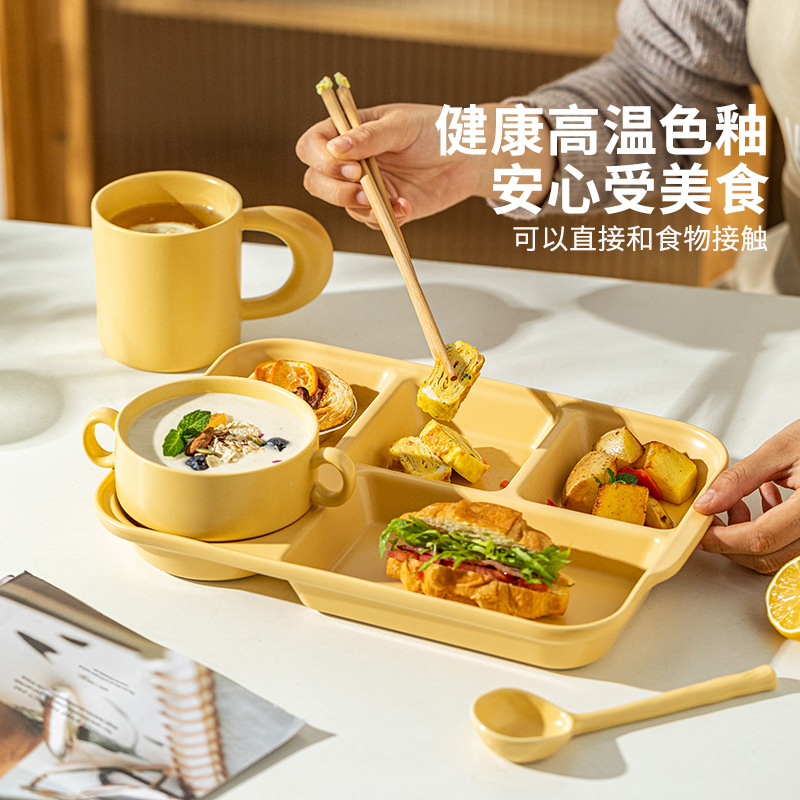 摩登主妇分格餐盘大人减脂月子餐具高颜值早餐盘儿童陶瓷分隔盘子