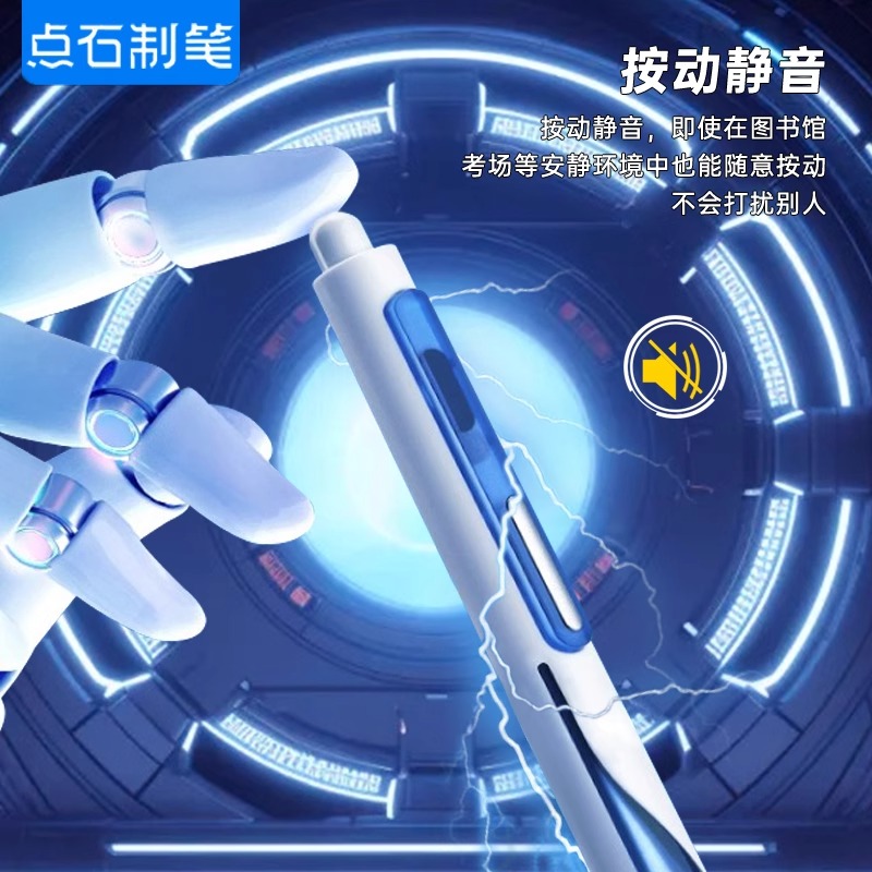点石制笔闪电时空舱太空舱按动中性笔静音笔0.5mm黑笔速干刷题笔太空仓时空仓学生考试高颜值双珠子弹头顺滑