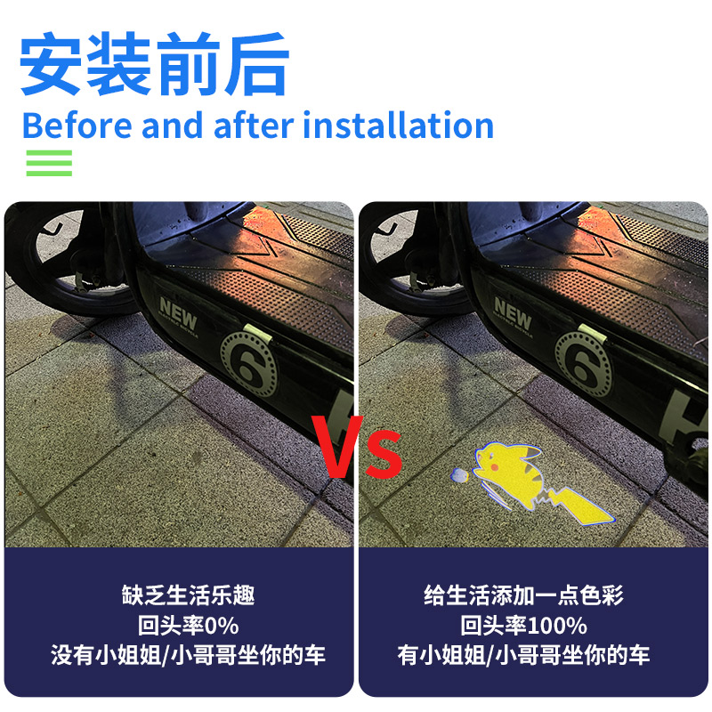 电动车投影灯摩托动态皮卡丘车载迎宾照地灯儿童自行车滑板改装饰