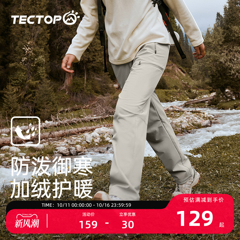 探拓户外加绒软壳裤男女款秋冬保暖长裤防风防泼水登山徒步冲锋裤