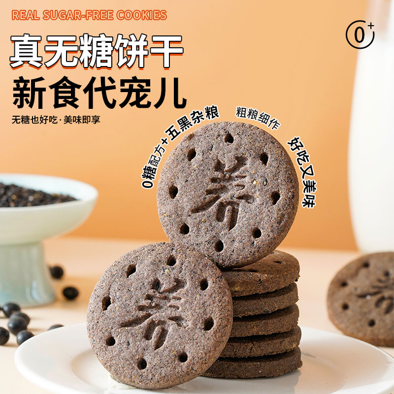 0糖无面粉五黑饼干黑米麦粗粮早餐孕妇老年尿人健康代餐饱腹零食