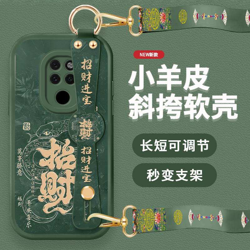 招财金蛇适用华为mate20手机壳mate20pro新款mate20x小羊皮mt20腕带por支架全包防摔女中国风清新保护软套
