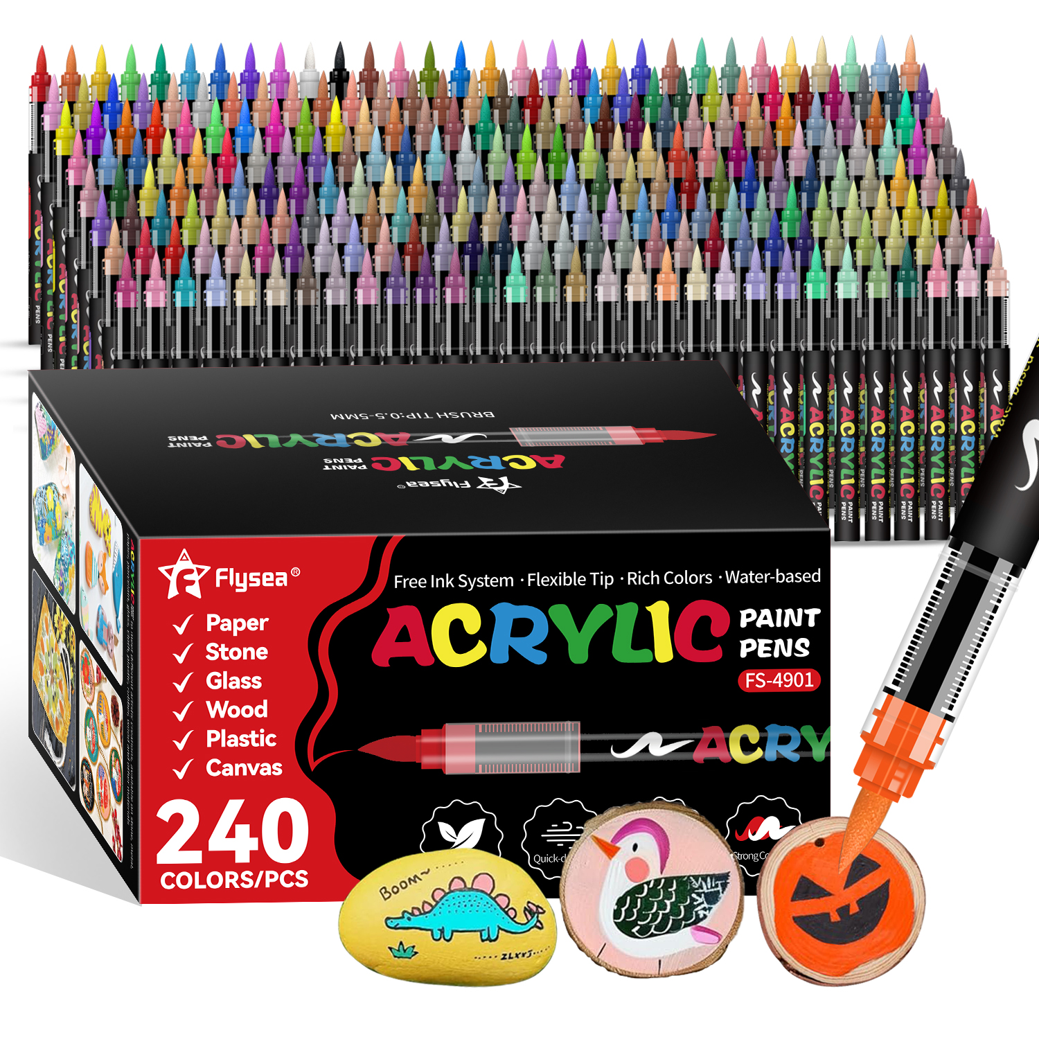 Flysea越洋直液式软头丙烯马克笔美术专用可叠色人体涂鸦记号笔