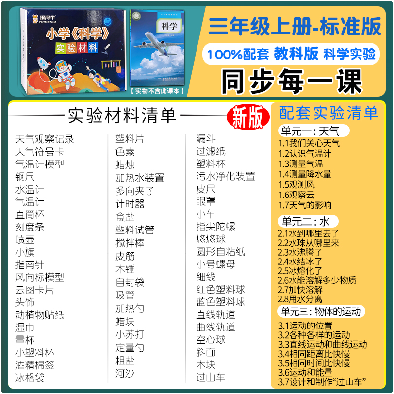 标准版小学一二三四五六年级上下册科学实验套装器材银河牛教科版