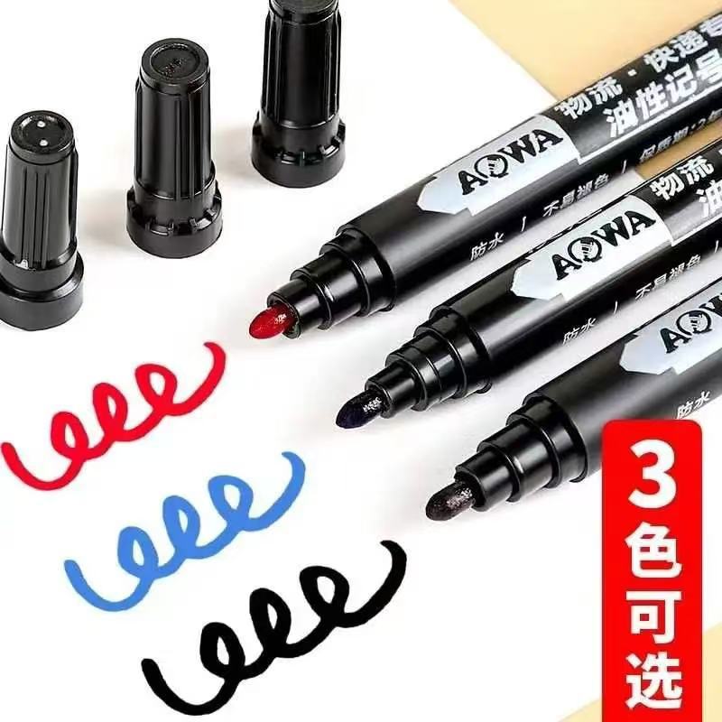 白色油漆笔防水防油不掉色记号笔白色补漆笔油性汽车描轮胎笔工地专用黑色工业速干白漆大头笔涂鸦描边标记笔