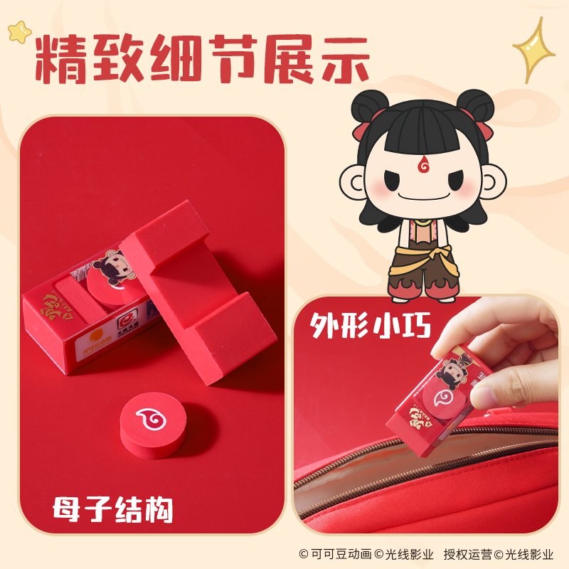 得力哪吒联名子母橡皮擦两件套卡通敖丙魔童一二年级小学生专用擦字成线集屑成条升级卡通不易留痕少屑正版