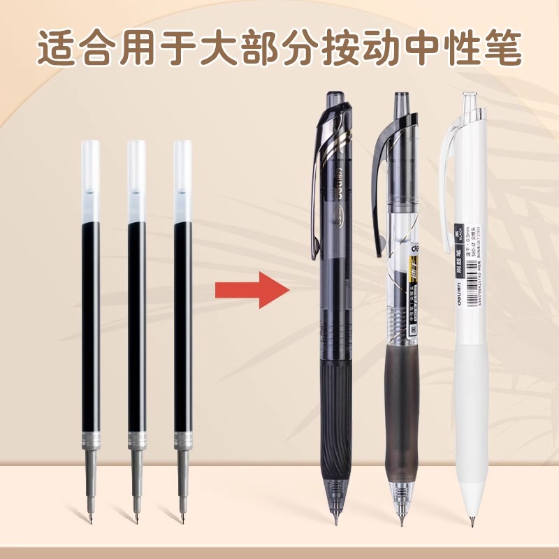 得力按动笔芯ST头速干0.5mm尖锥头摁压式中性笔替芯弹簧子弹头黑色签字加强型针管碳素圆珠笔考试刷题水笔芯