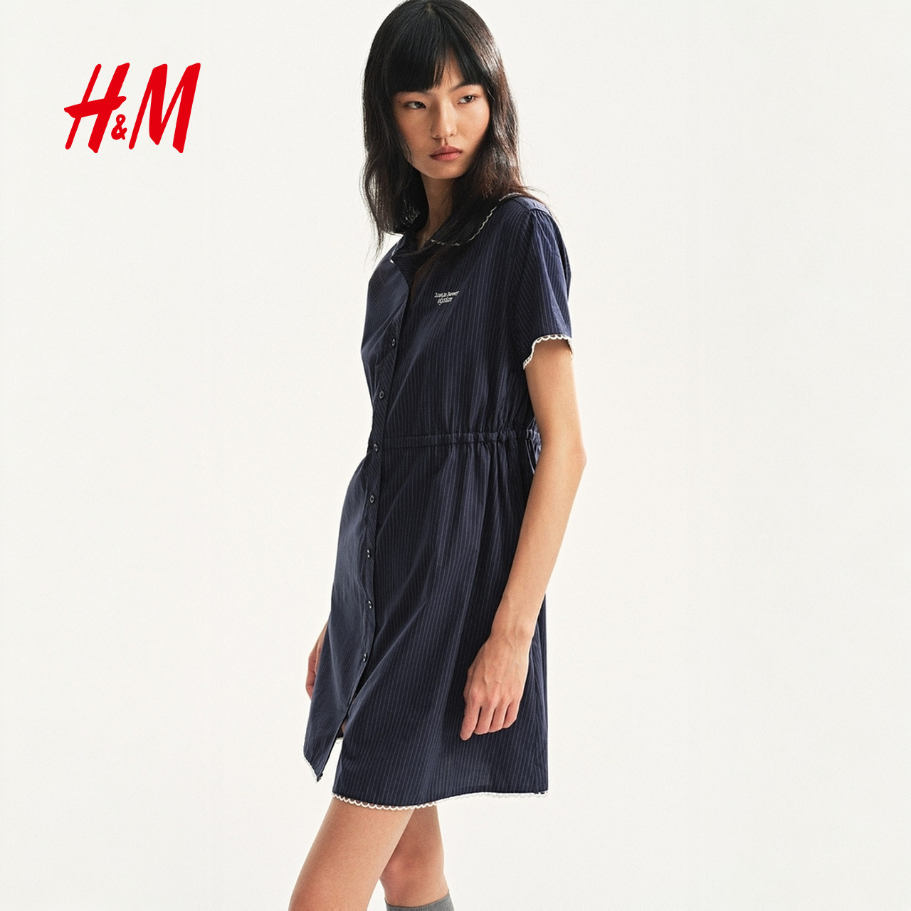 HM女装连衣裙2025夏季新款小环饰边衬衫式千金风连衣裙1305473