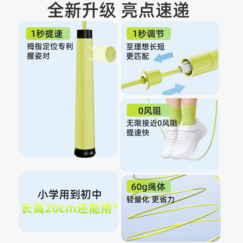 兰教练跳绳2.0双轴承儿童小学生考试一年级幼儿园初学竞速跳绳