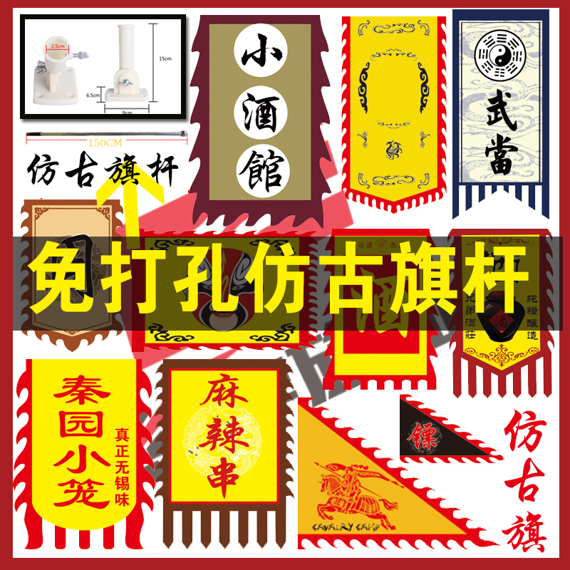 仿古旗杆双面招牌广告旗子白色户外型装饰悬挂式复古旗酒旗茶旗客栈旗配灯杆壁挂斜插底座支架伸缩旗子套装