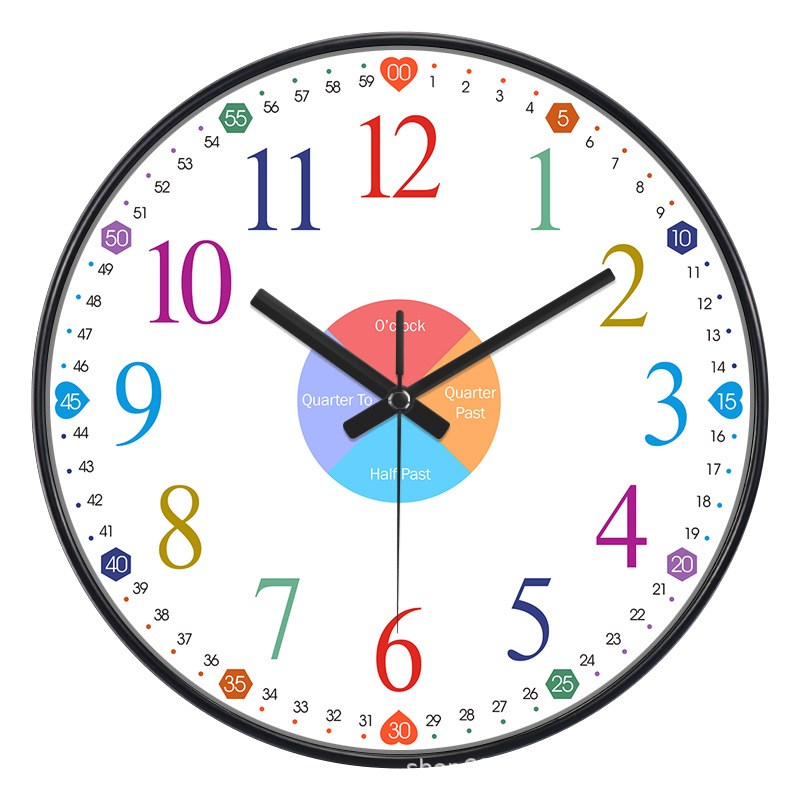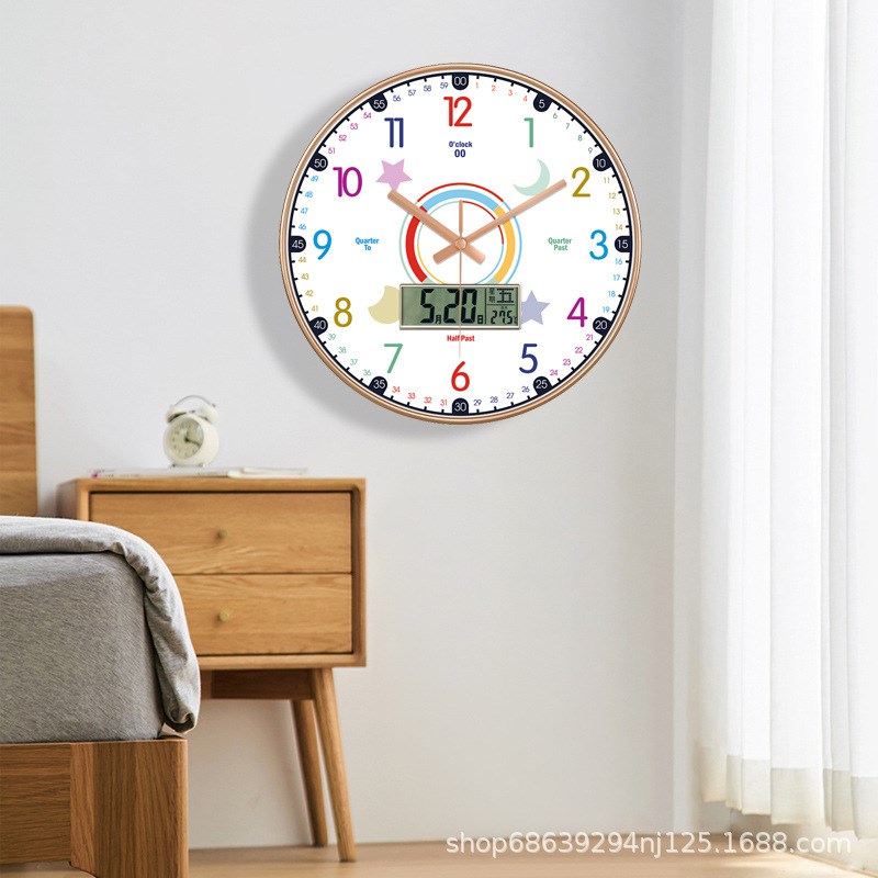 学生认数时钟电波免打孔挂表家用自动对时挂钟儿童房早教日历钟表