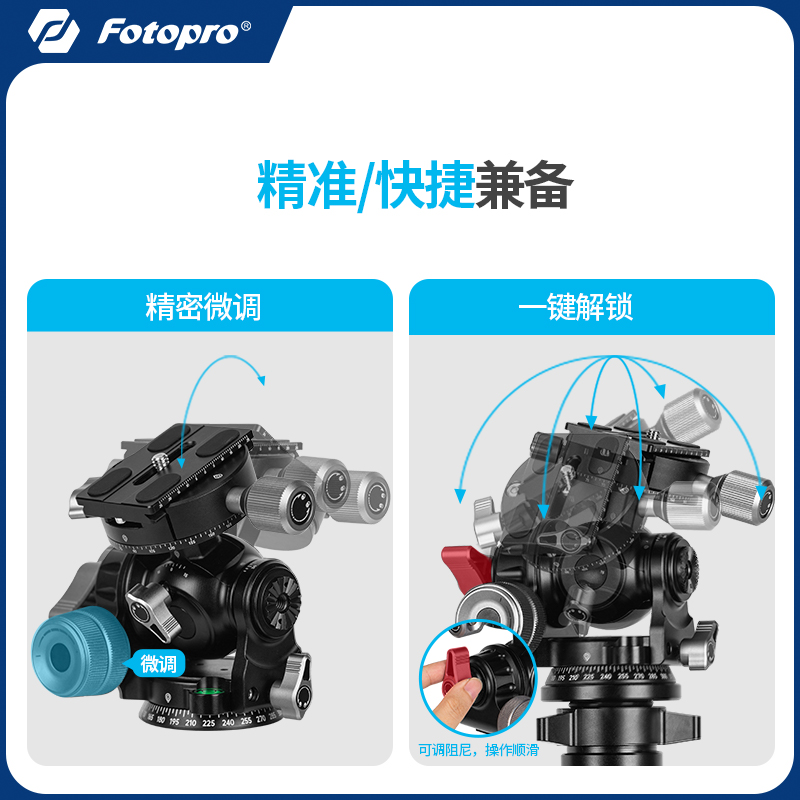 富图宝GH02精密微调三维齿轮云台带手柄GH03微距毫米级专业拍摄建筑风光接片摄影三合一轻量视频多功能GH01
