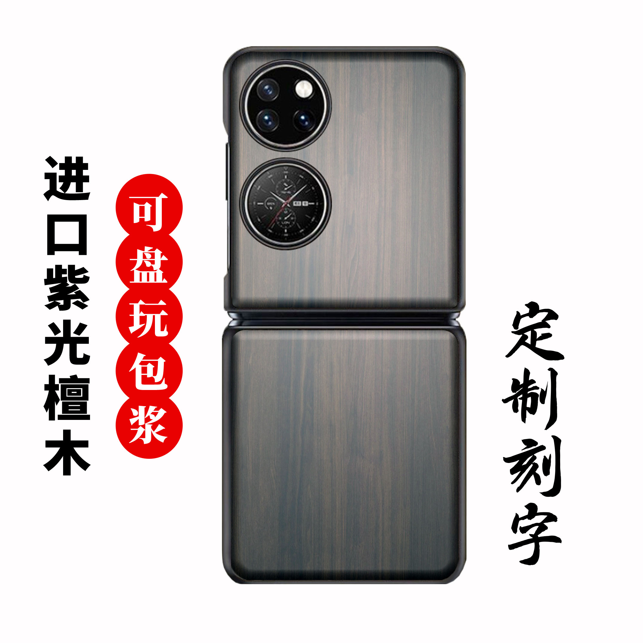 适用于华为P50pocket手机壳pro紫光檀木防摔pocket S全包般若波罗蜜多心经保护套pocket 2平面雕刻可定制