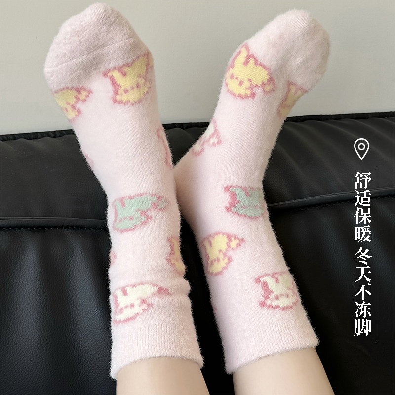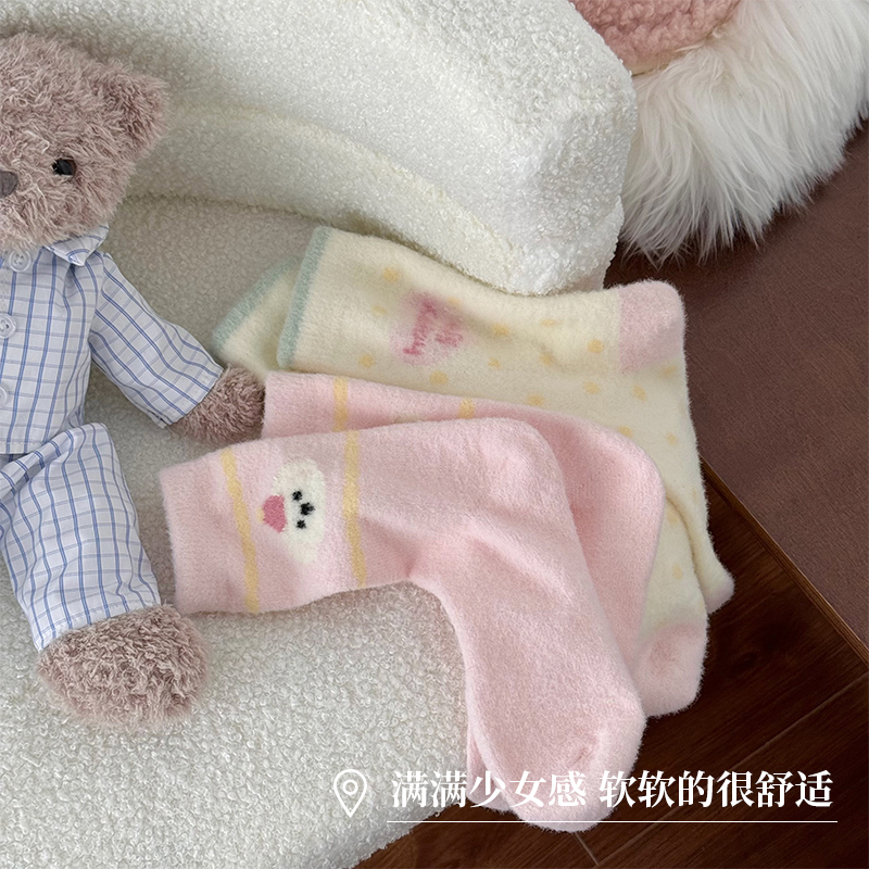 毛绒袜子女秋冬珊瑚绒月子袜加厚保暖可爱澳绒棉袜居家地板睡眠袜
