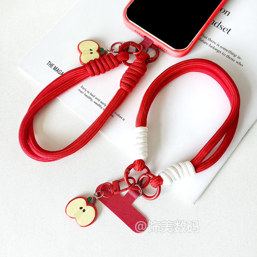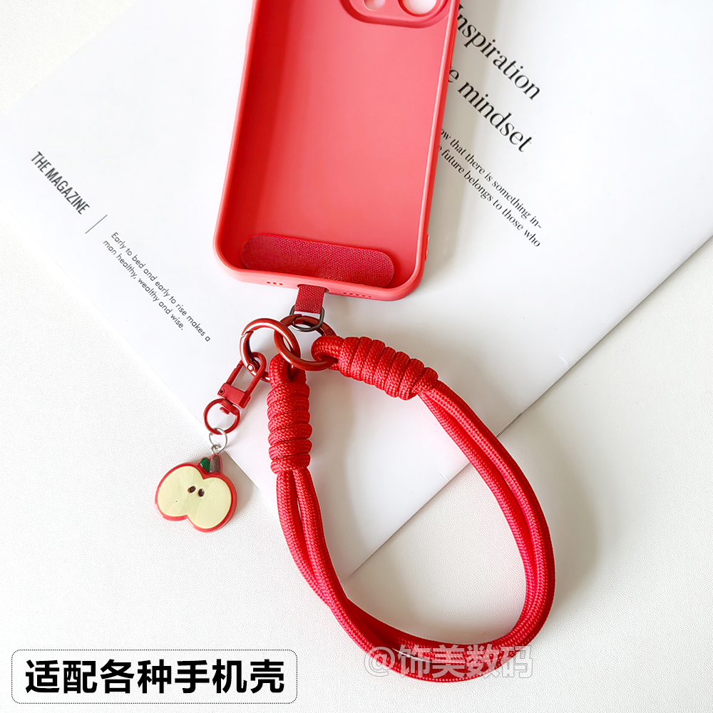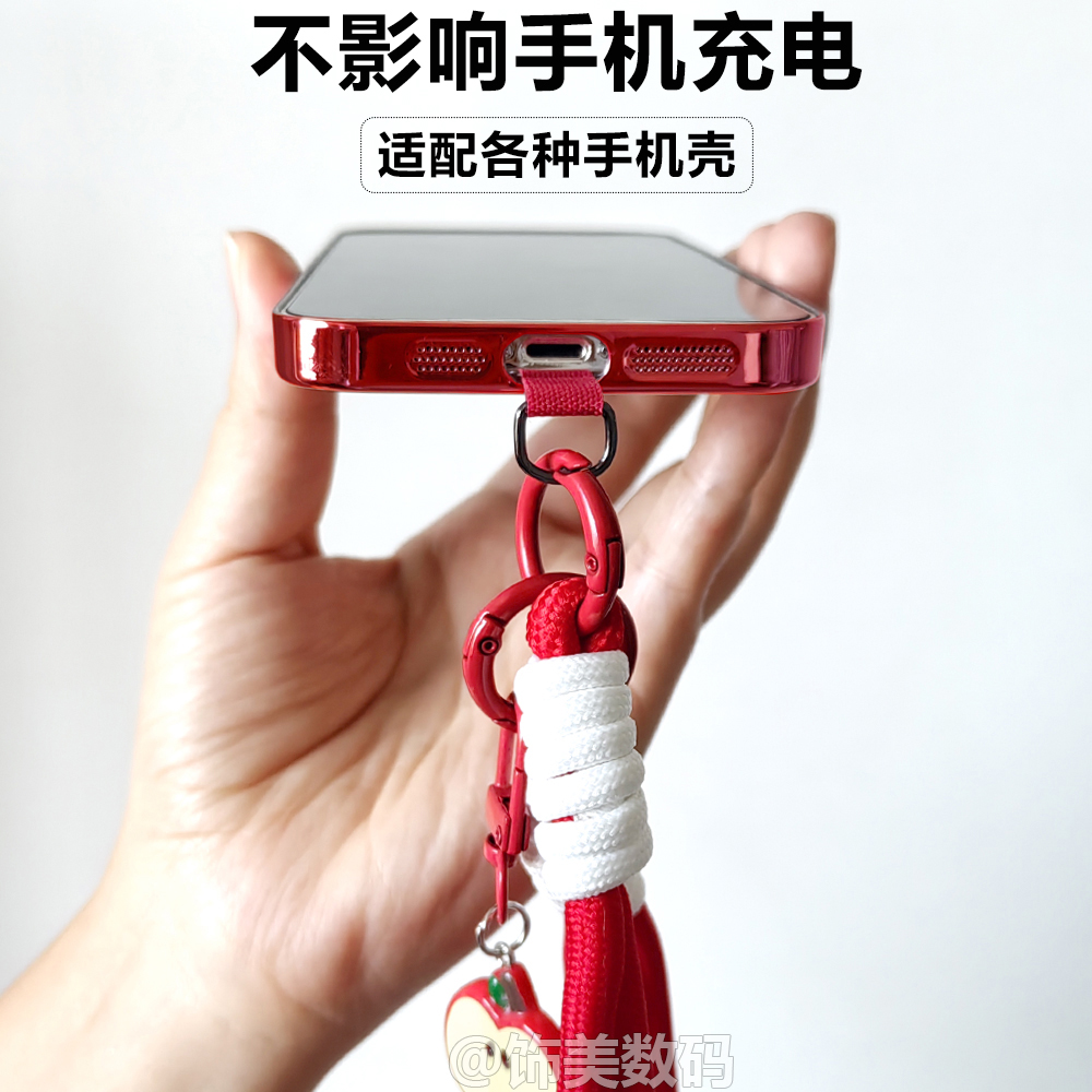 时尚国风手机挂绳中国红手腕绳吊坠挂件加粗手机链撞色编织绳男女同款时尚百搭高品质防丢失不影响手机充电
