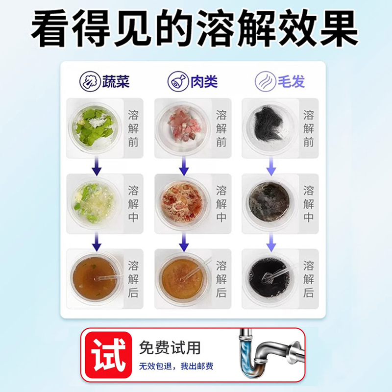 管道下水道强力疏通剂溶解通厕所马桶厨房粉油污地漏堵塞除臭神器