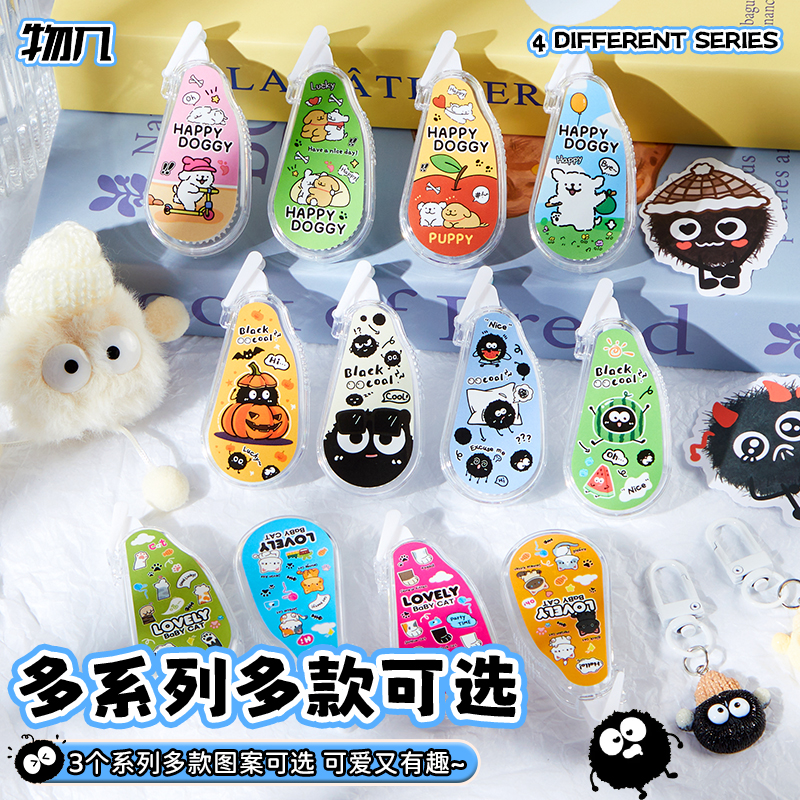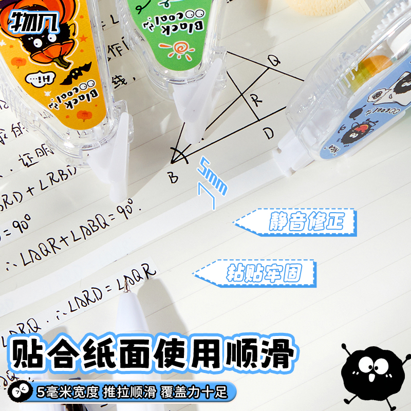 物几 小煤球透明修正带搞怪可爱女初中小学生专用修改带高颜值静音顺滑不断带涂改带大容量多功能改错带文具