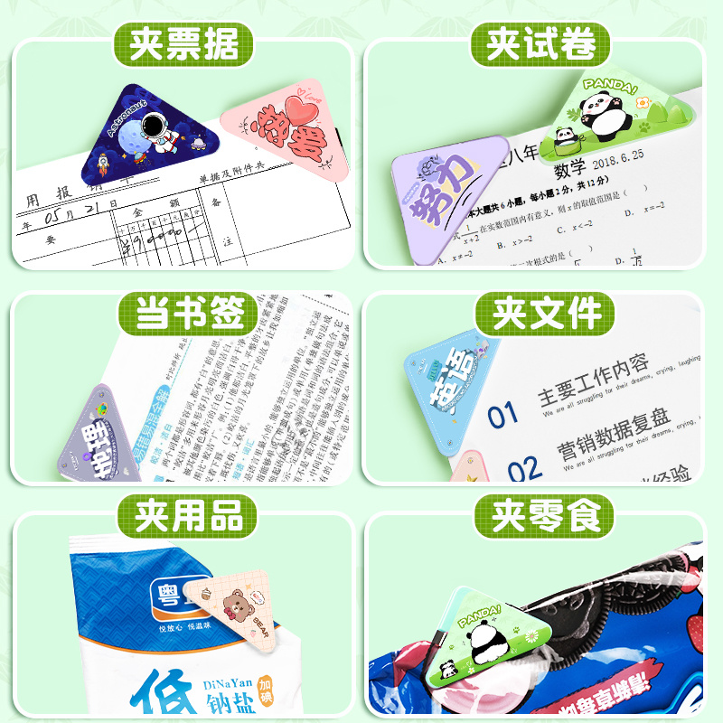 多功能卡通彩色边角三角夹学生可爱便签夹子试卷资料办公收纳整理