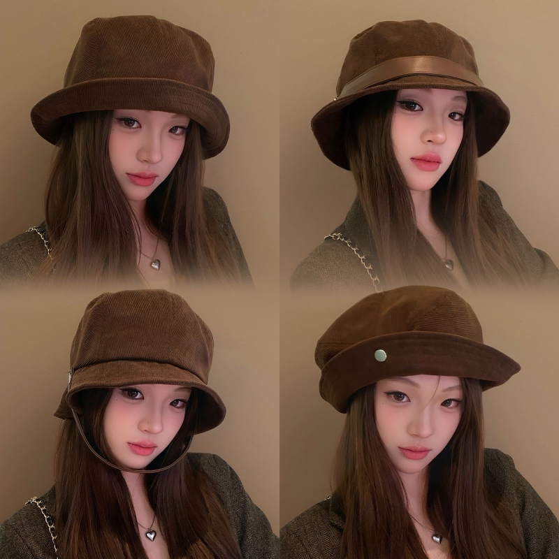 秋冬新款高品质灯芯绒渔夫帽一帽多戴可做小礼帽高性价比骑车可戴