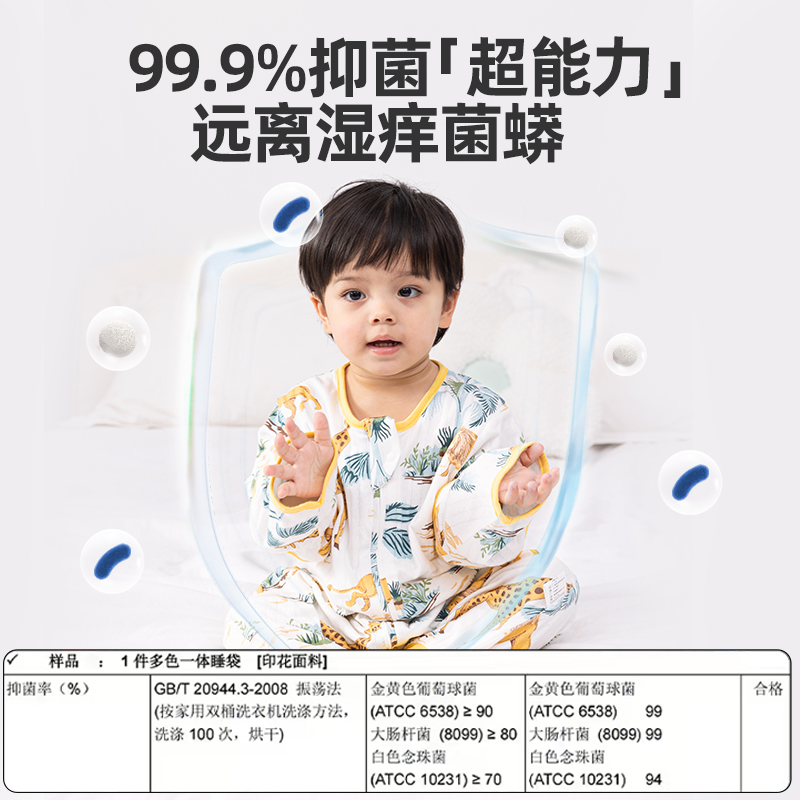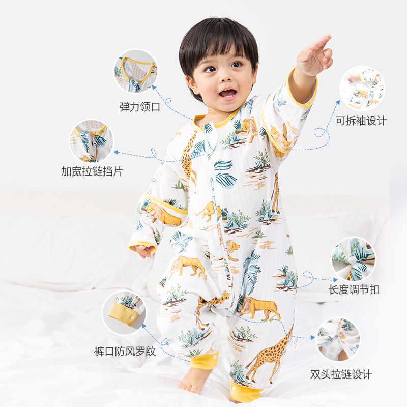 BeBeBus婴儿睡袋春秋儿童恒温分腿连体睡衣宝宝四季秋冬睡袋