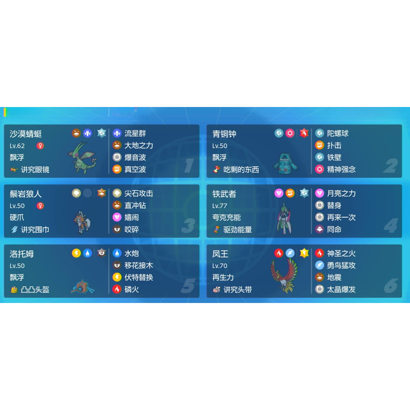 switch宝可梦朱紫规则I单打队伍沙漠蜻蜓青铜钟趋劲能量凤王队