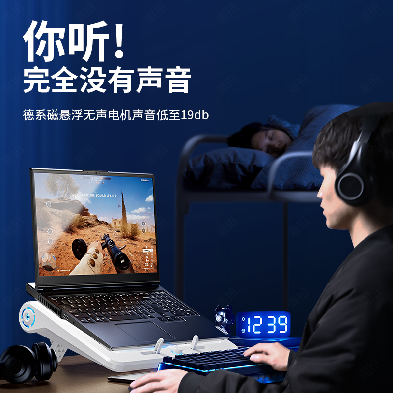 【冷过水冷】笔记本散热器底座游戏本风压式静音风扇制冷降温板手提电脑支架适用联想戴尔外星人压风式