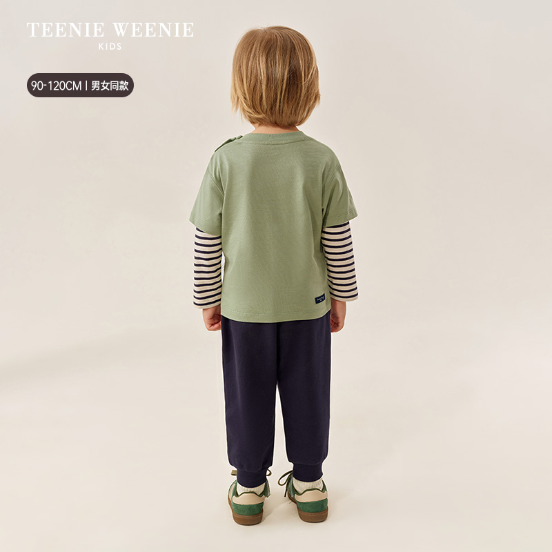 TeenieWeenie Kids小熊童装25年新款男女宝宝撞色假两件长袖T恤衫