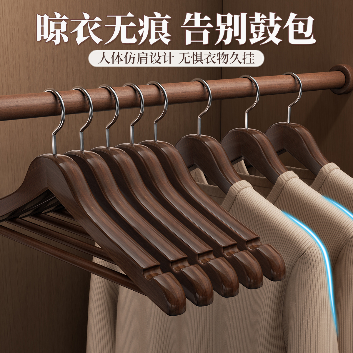 木质实木衣架家用挂衣衣挂无痕防滑木头木制衣服挂衣架子衣柜撑子