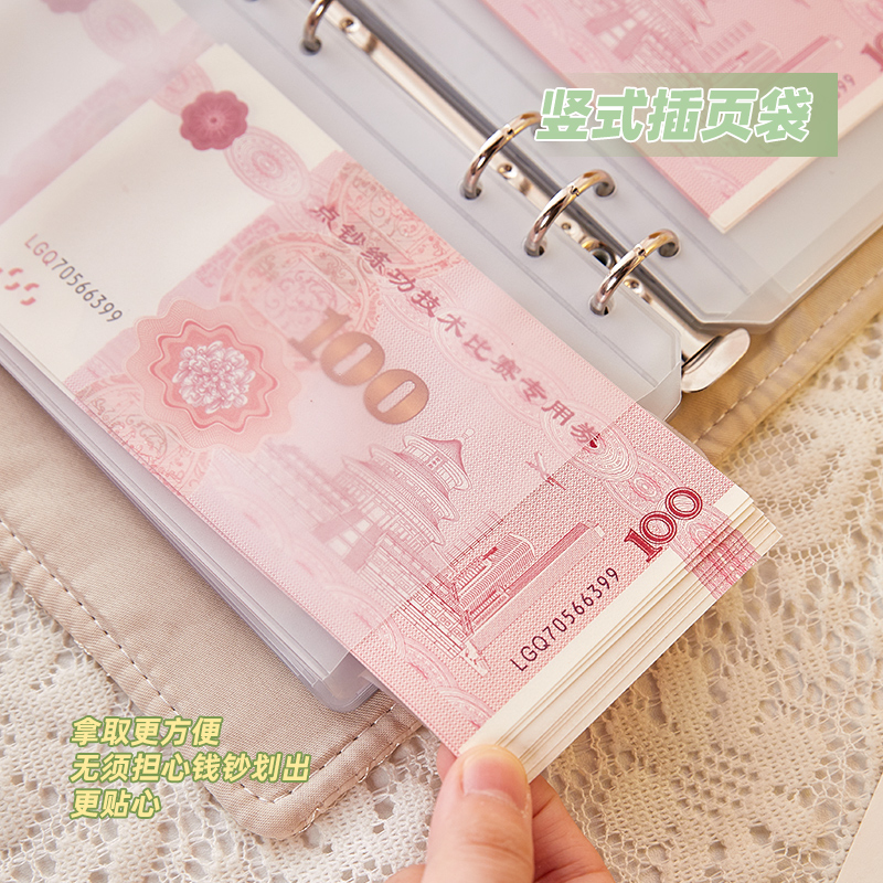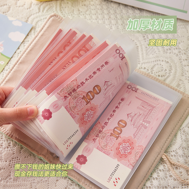 小清新布艺a6存钱本活页可拆卸韩系ins风女孩夹钱册大容量票据现金收纳册儿童放钱的本子高颜值纪念币收藏册