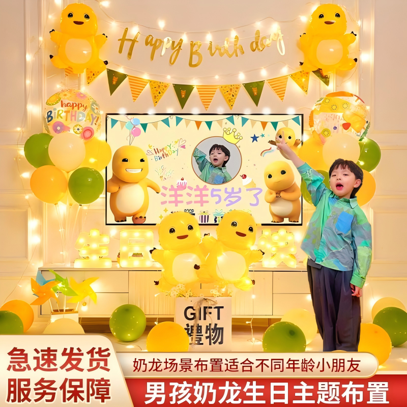 儿童奶生日气球场景布置恐龙女孩男孩派对装饰投屏主题氛围铝膜
