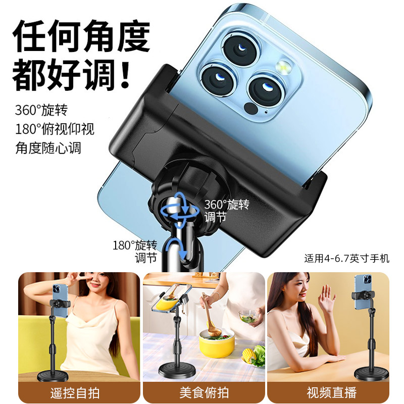 手机拍摄支架直播专用自拍杆三脚架落地式多功能支撑架通用捭机架户外便携伸缩升降网课考研复试架子三角支夹