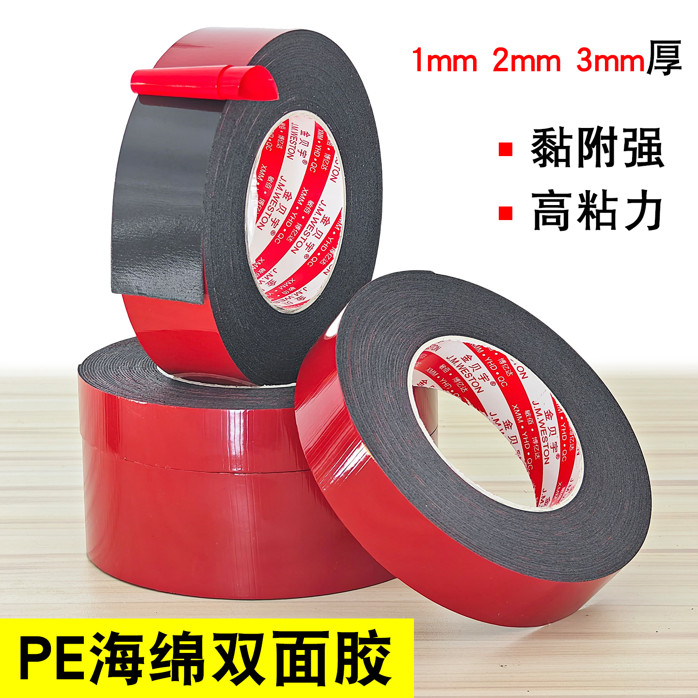 进口黑色海绵双面胶带真石线条PE红膜泡棉泡沫LED灯条胶带1 2 3mm
