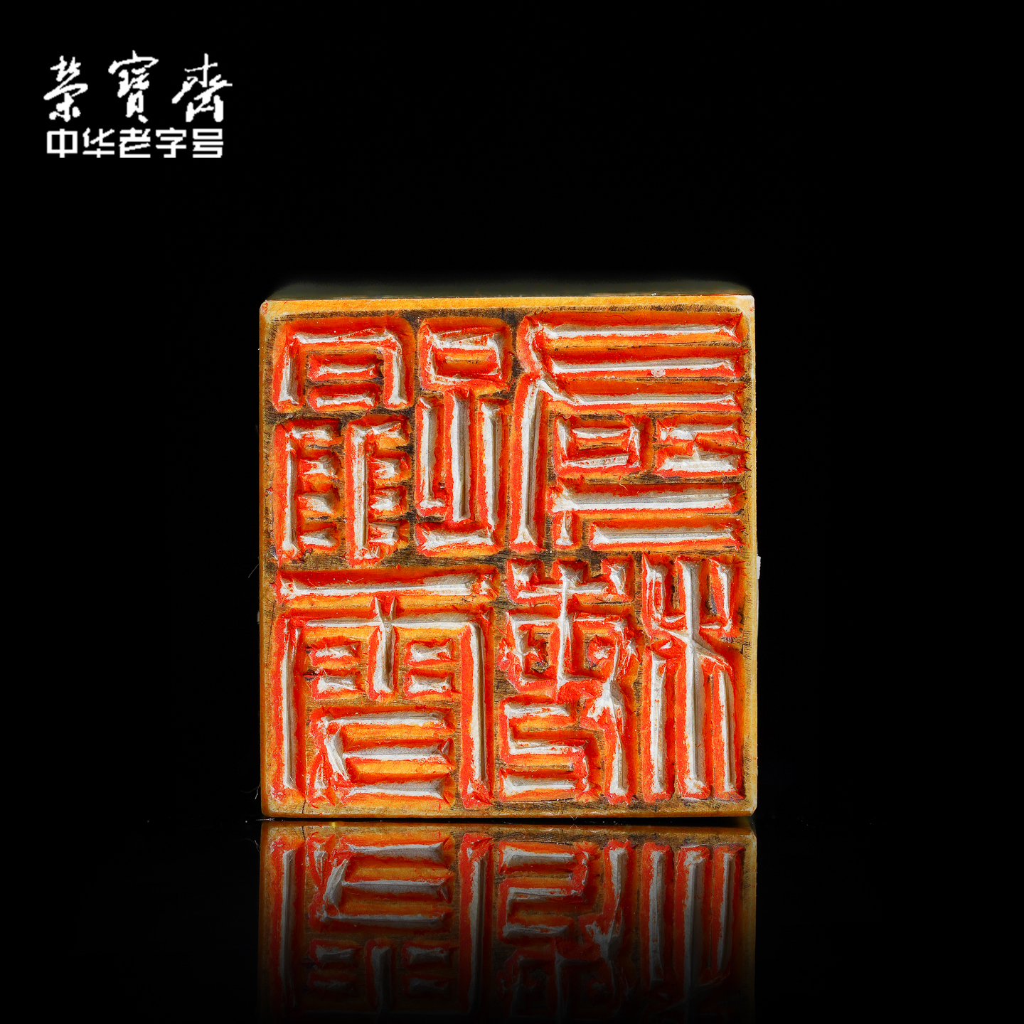 荣宝斋孤品闲章篆刻印章手工刻字方形卡通图案四字吉语成品书画印泥毛笔字书法老挝石青田石章料藏书章礼品
