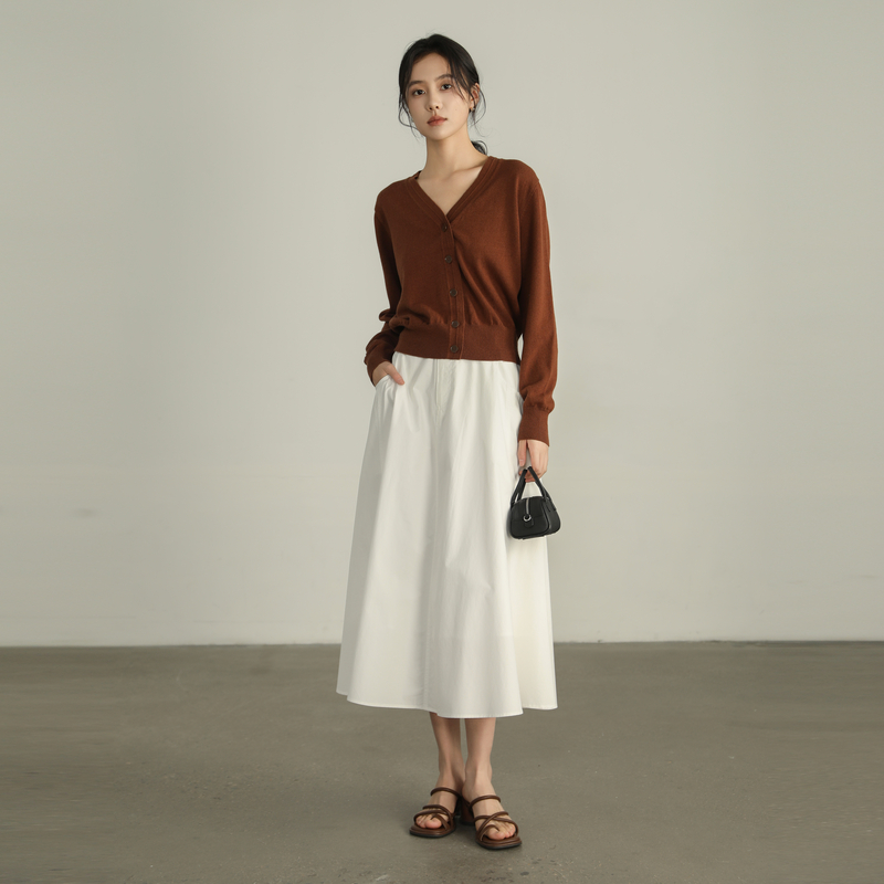 AIRIQI春季新款法式小香风高级感V领薄款宽松针织开衫AF41KS317
