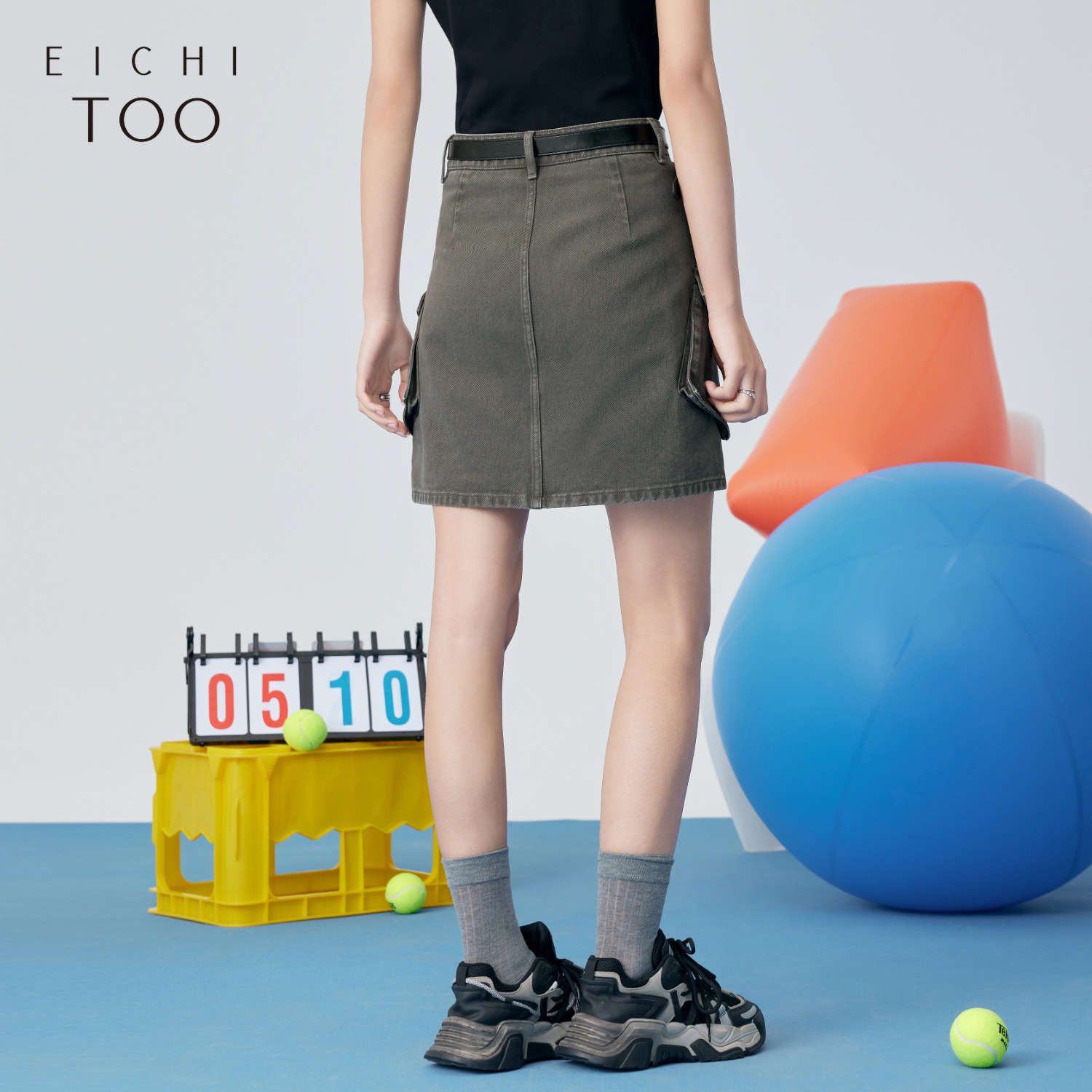 爱居兔夏季新款工装风搭配腰带水洗牛仔半身裙