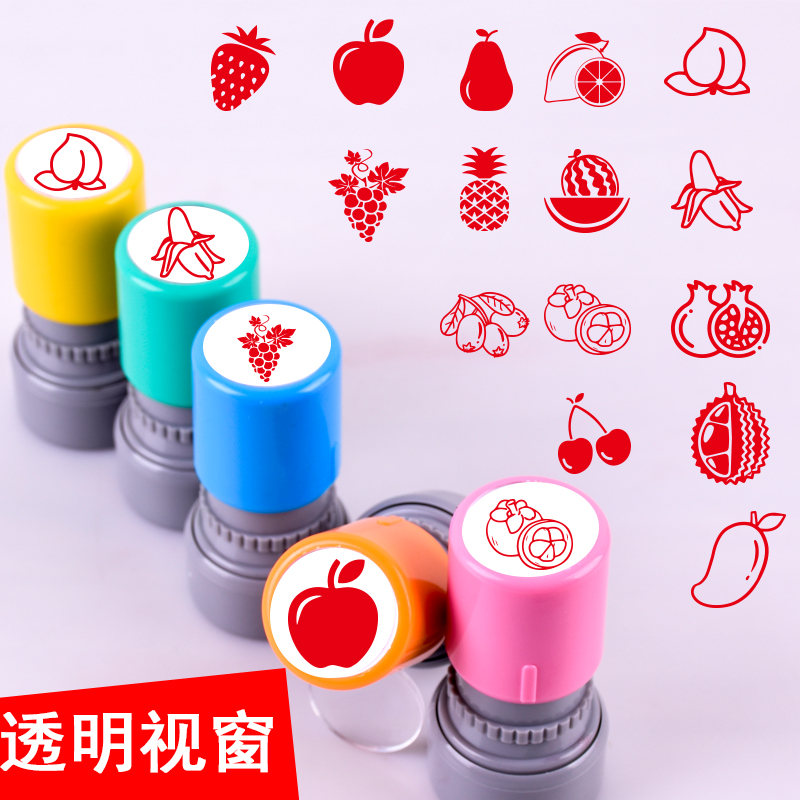 卡通水果印章幼儿园儿童认识菠萝柠檬西瓜葡萄图案石榴可爱小番茄香蕉苹果草莓樱桃多种图卡章盖印