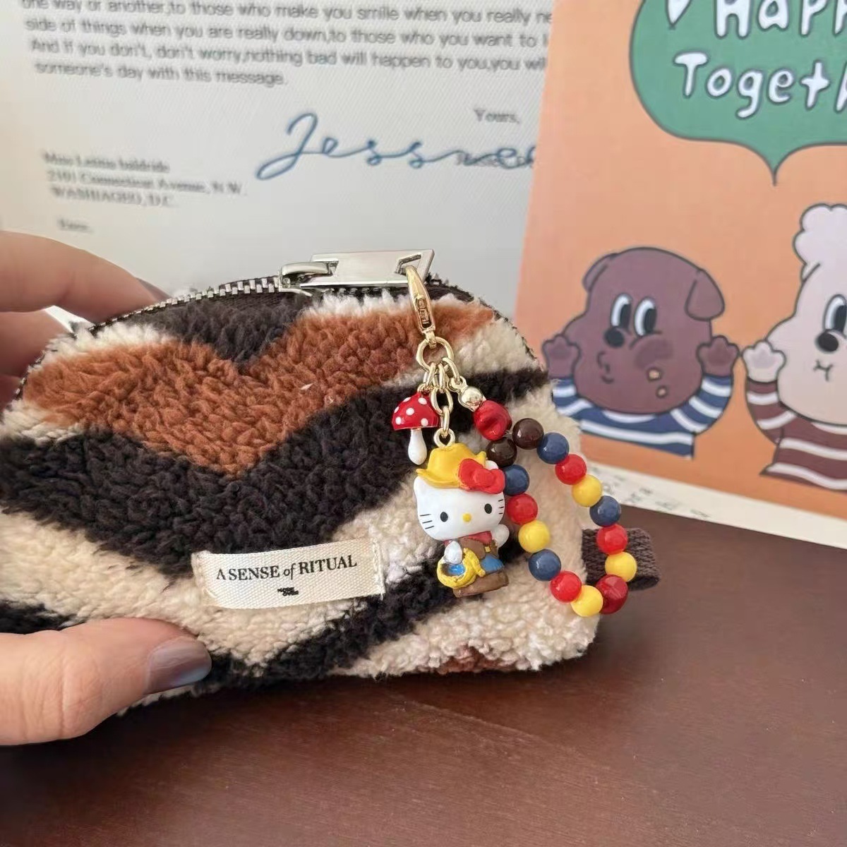 原创手作 可爱牛仔蘑菇小猫女包挂件翻包拉链扣头手机链耳机挂饰
