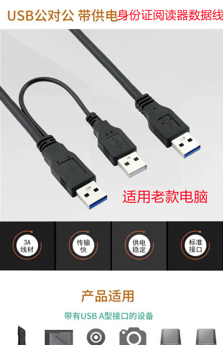 华视CVR-100U/100UC/100N身份证读卡器阅读器原装USB数据线公对公
