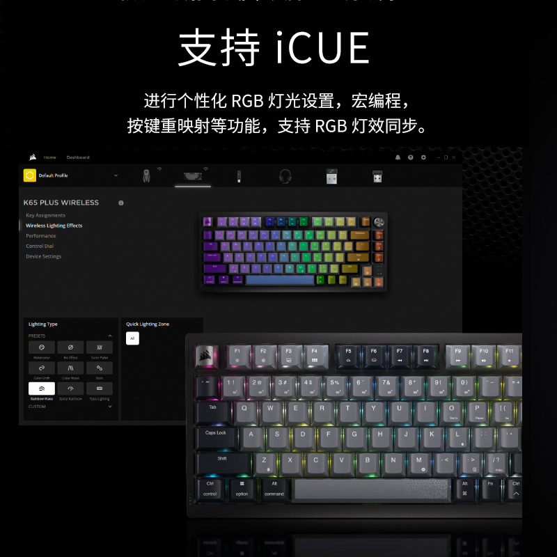 美商海盗船K65RGB PLUS 机械键盘游戏红轴蓝牙三模全键热插拔驱动