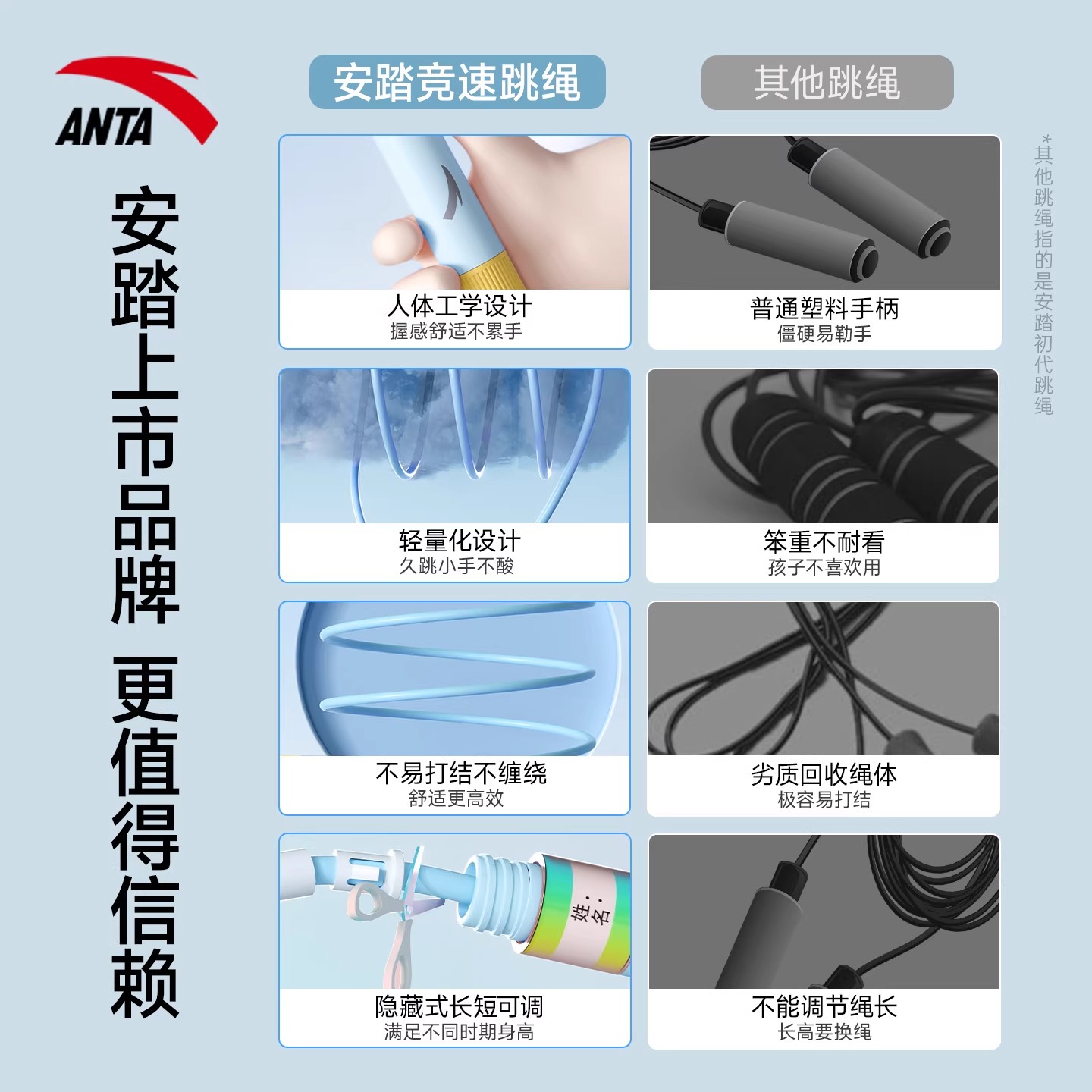 安踏竞速跳绳中考专用学生儿童小学初学专业不打结跳神考试训练绳