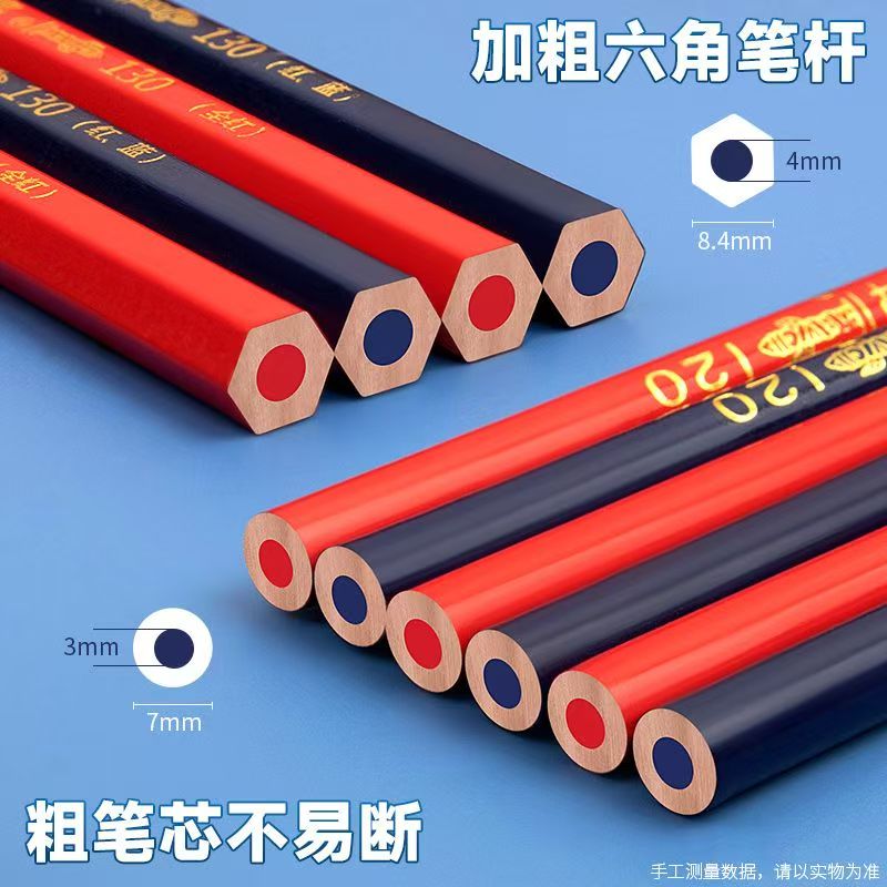 中华牌特种铅笔红蓝医学双色双头笔红芯木工工地绘图点位划线专用