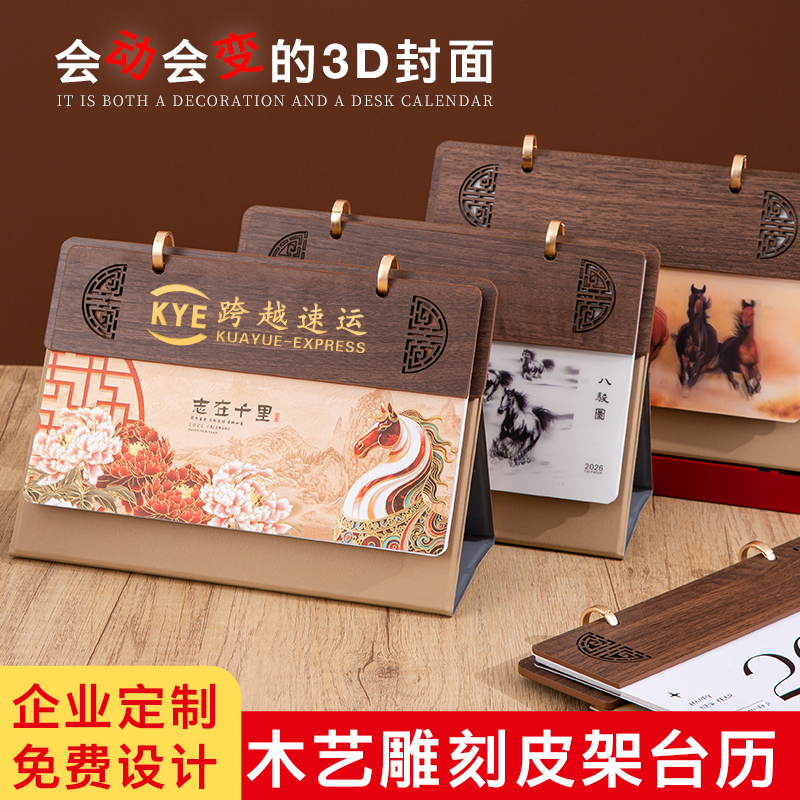 2026年新款台历定制logo商务办公桌面摆件创意日历3D立体万马奔腾马年礼盒装可替换企业内页宣传新年送礼首选