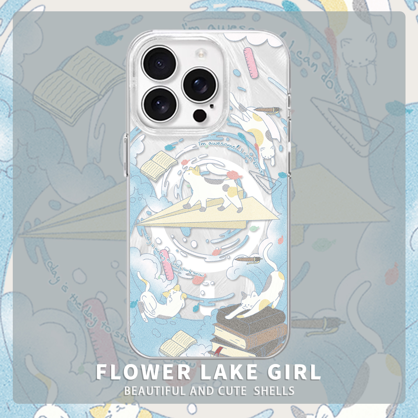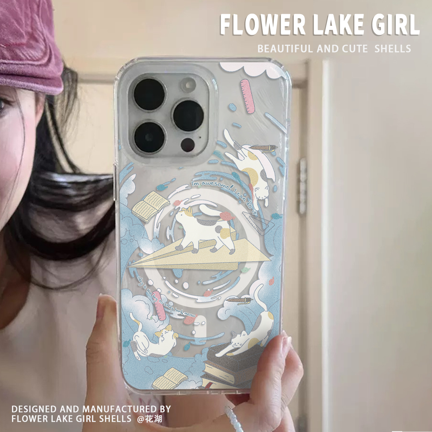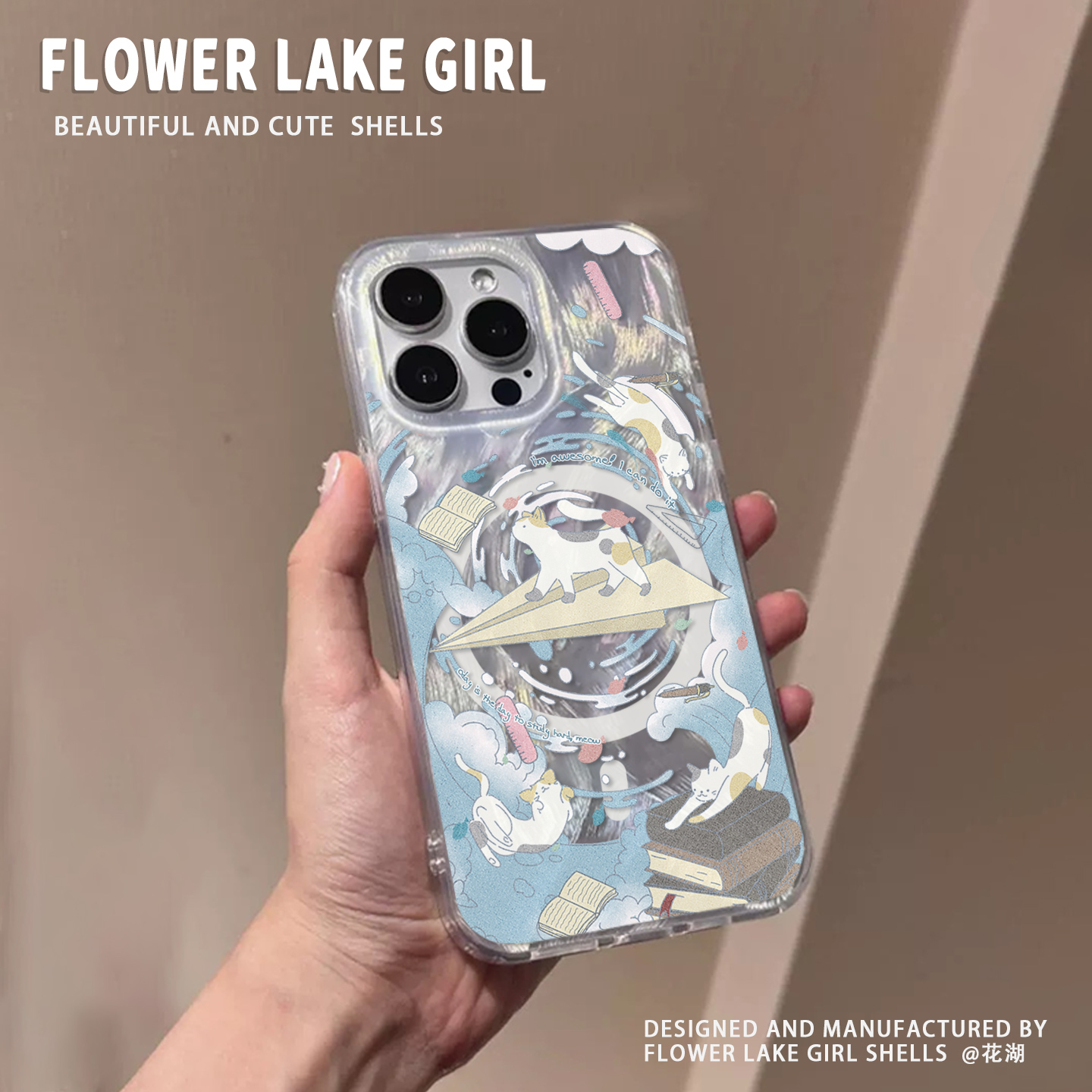 【时空之旅】书海遨游小猫适用iPhone16/15pro手机壳红米K70磁吸vivos19华为mete60羽纱一加ACE3小米14一加11