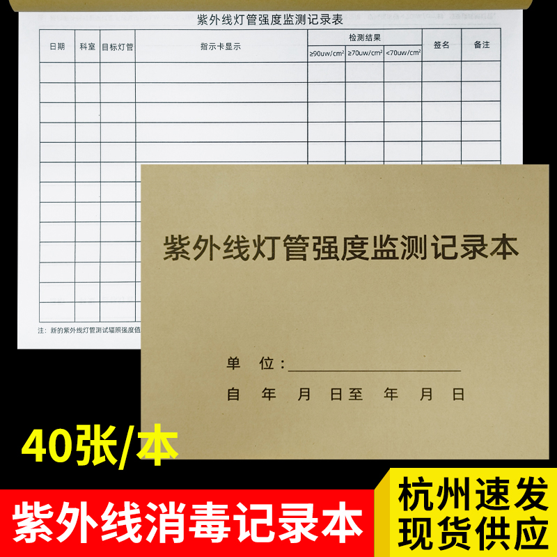 紫外线消毒记录本医院紫外线灯管强度监测登记本四环紫外线检测卡