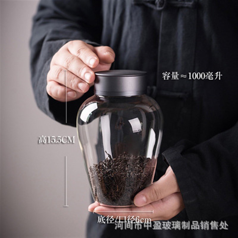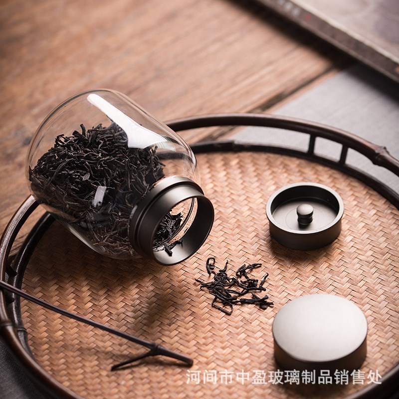 日式玻璃茶叶罐密封罐放茶叶的小号罐子存茶储物罐铝合金盖防潮