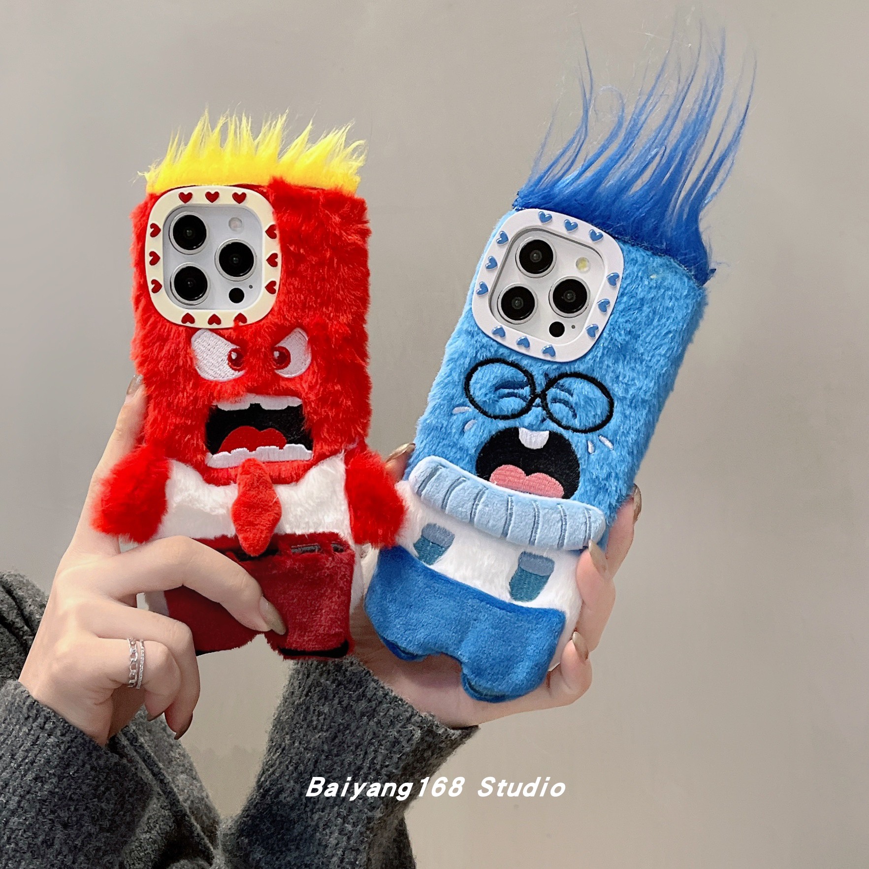 毛绒头脑特工怒怒忧忧适用iPhone16promax手机壳苹果15可爱卡通14pro秋冬16新款13小众女15pro全包12防摔软壳
