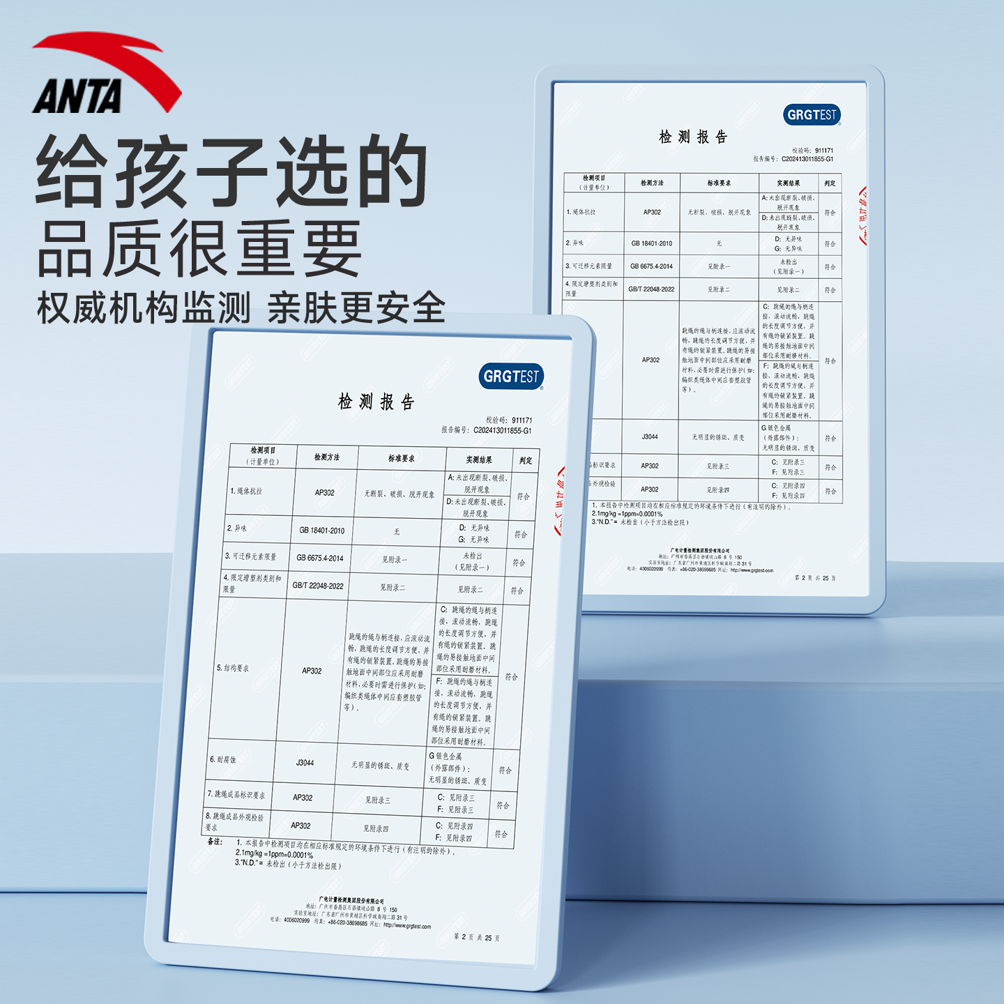 安踏竹节跳绳儿童小学生初学专用软竹节幼儿园一年级初中生成人绳