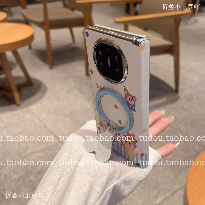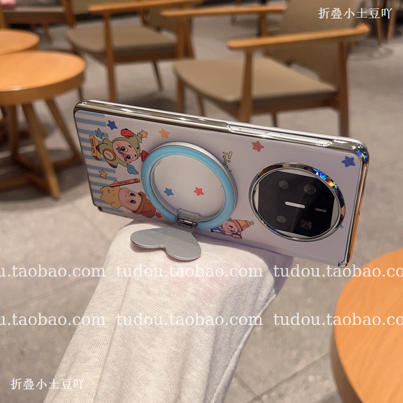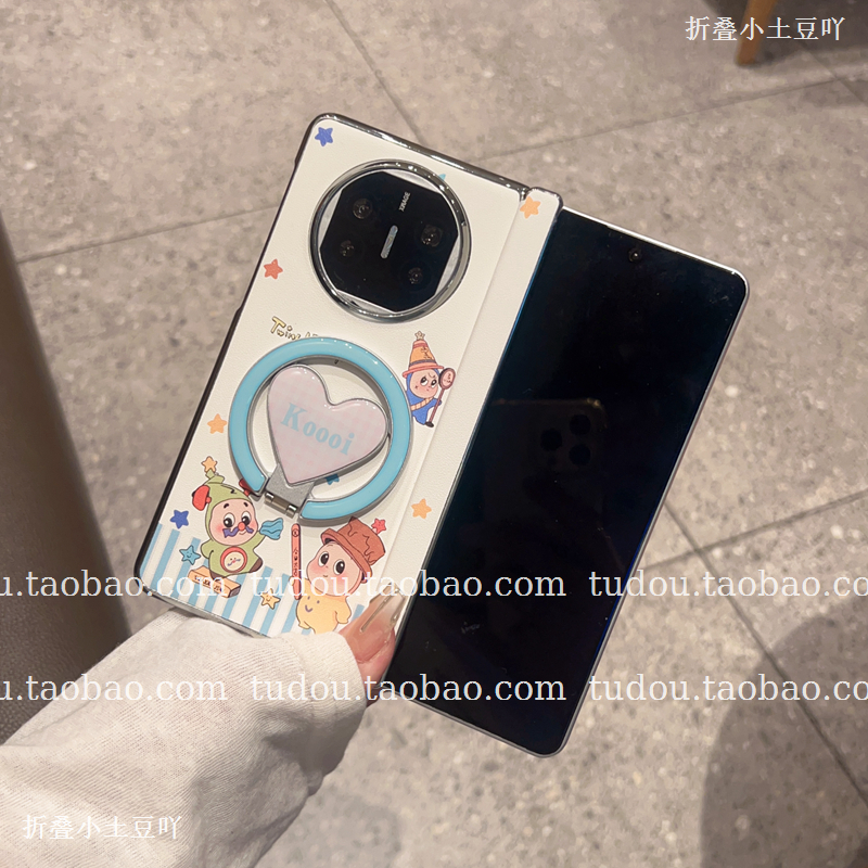 新品爱心指环磁吸支架适用华为matex6手机壳皮质星星公仔中轴磁吸magicv5折叠保护vivoxfold3手提挂绳mix防摔