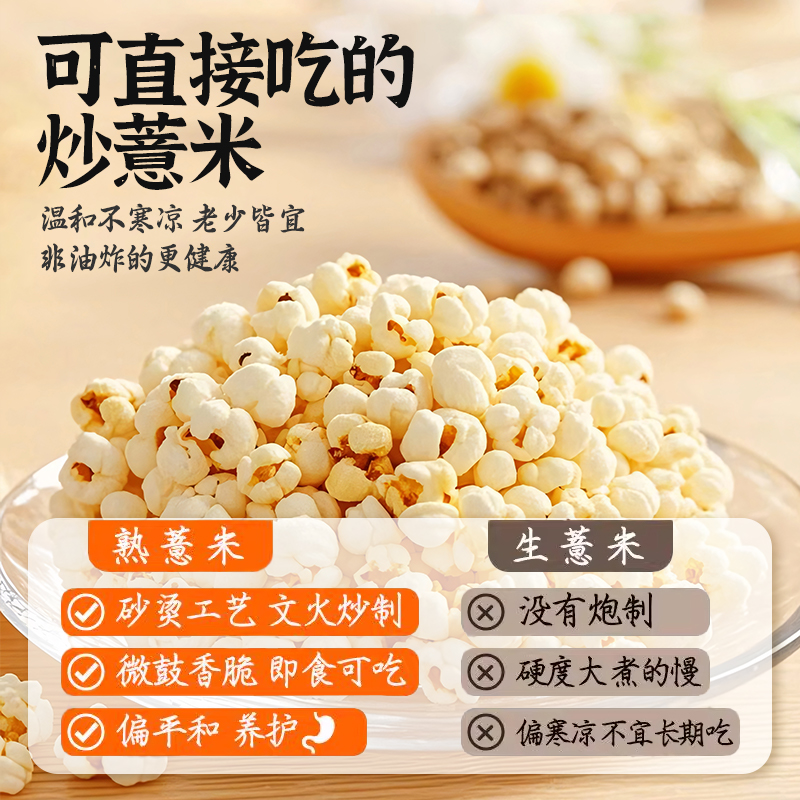 炒熟薏仁米炒薏米仁专用爆米花正品新货无添加祛湿零食官方旗舰店